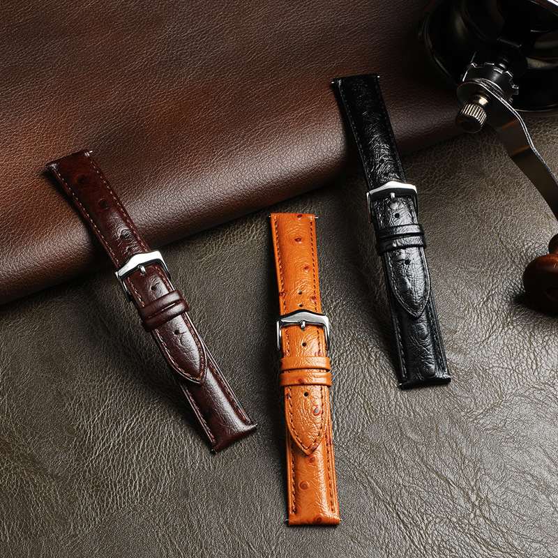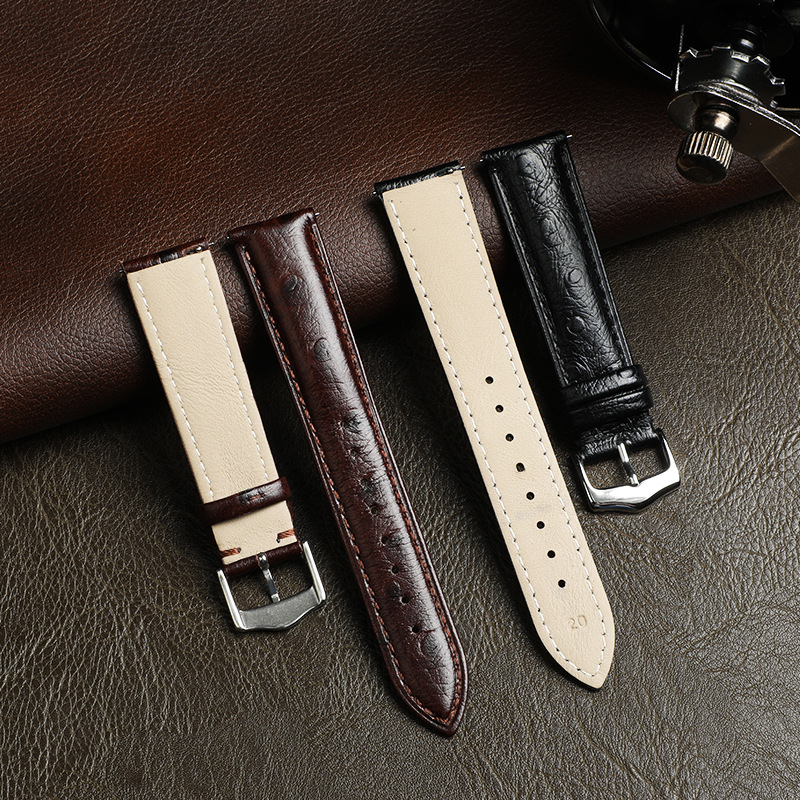 Wholesale CHARM Genuine Leather Strap 20/22mm Ostrich Pattern Smart Watch Wristband Universal Watch Band