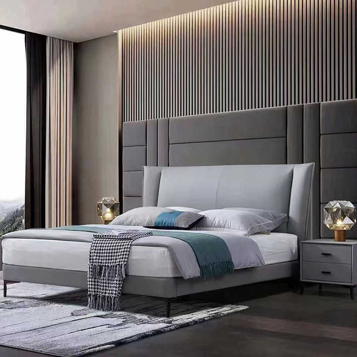 Wholesale Cama Lit Modern Furniture Tufted Fabric Slat Dormitory Hotel Room King Double Italian Bed