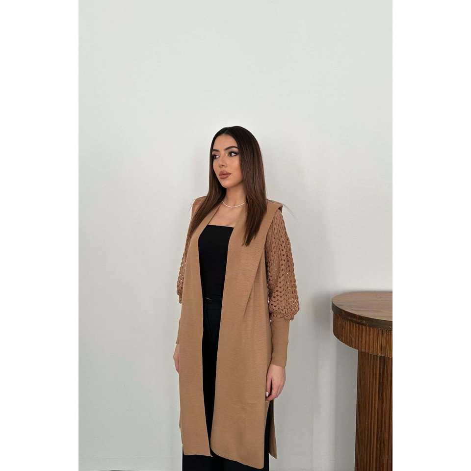 Wholesale Camel Sleeve Knitted Cardigan Casual Solid and Print Pattern Short Length for Autumn and Winter Seasons