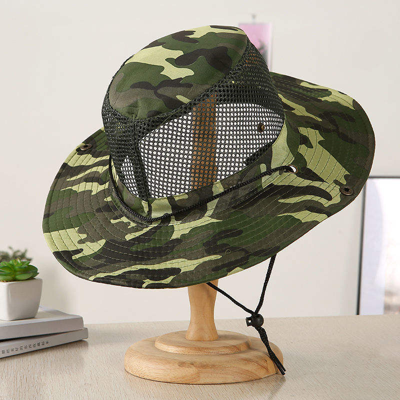 Wholesale Camouflage Mesh Bucket Hats Wide Beach Hat UV Breathable Hunting Fishing Climbing Hiking Outdoor Men