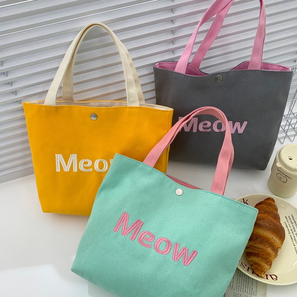 Wholesale Candy Color Women Tote Bags Canvas Cotton Solid Color Shoulder Hand Bag Embroidery Logo Grocery Bags for Women