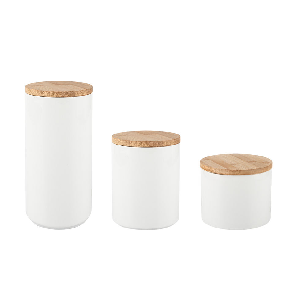 Wholesale Canister Food Storage with Bamboo Lid Jars Containers Ceramic Canisters with Lid for Store Candy Biscuit Nut