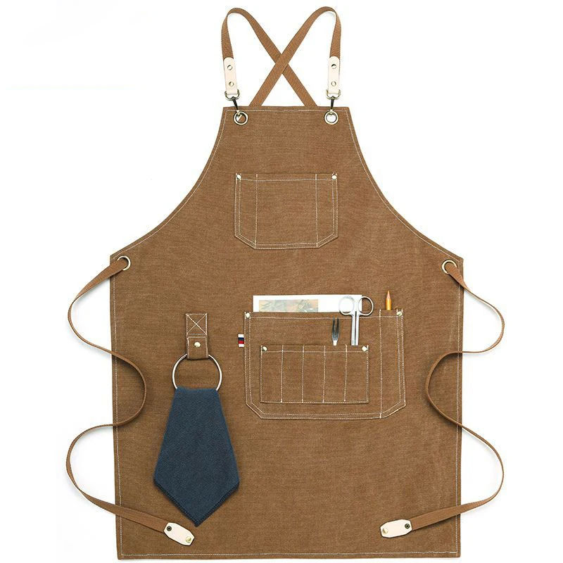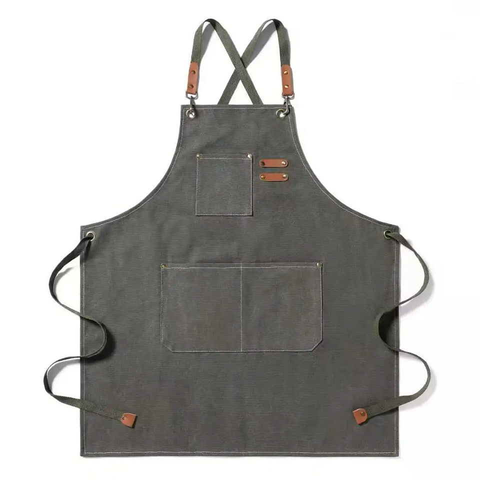 Wholesale Canvas Cross-back Waterproof Apron Men Women Chef Cooking Kitchen Uniform Barbecue Restaurant Working Apron