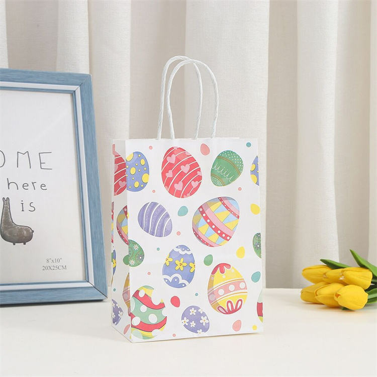Wholesale Cartoon party gift kraft paper shopping bag Easter Rabbit printed packaging tote bag