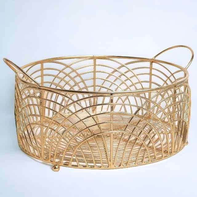 Wholesale Cast Iron Gold Plated Decorative Round Basket for Diwali Gifting 10 Inch Diameter, 5 Inch Height