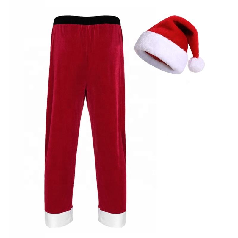 Wholesale Casual Festival Club Christmas Santa Cosplay Costume Velvet Long Mens Pants Trousers