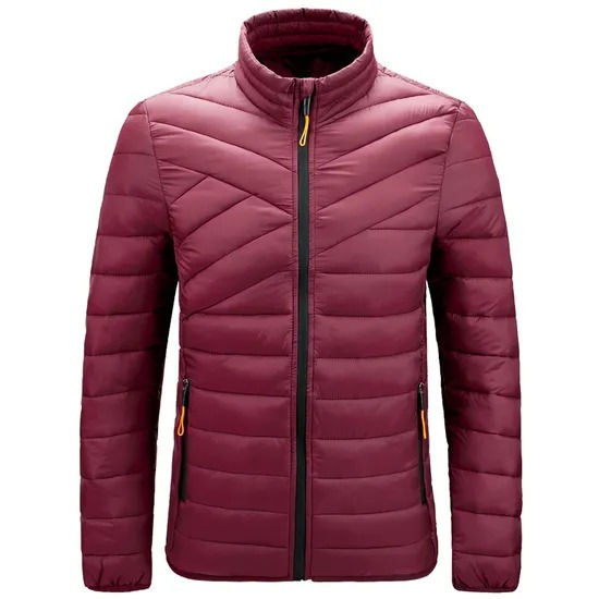 Wholesale Casual Men s Solid Nylon Puffer Jacket Winter Thick Hooded Zipper Stand Collar Breathable Waterproof Quick Dry Coat