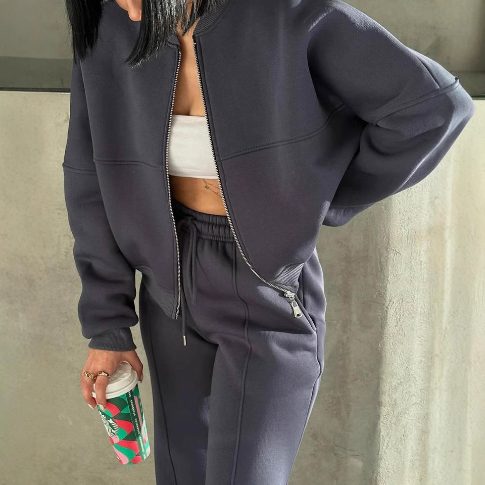 Wholesale Casual Sportswear for Women Autumn Winter Long-Sleeved Fleece Trousers Fashionable Street Style Tracksuits