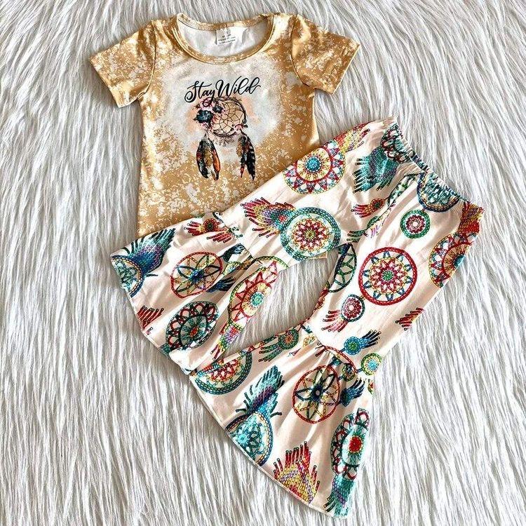 Wholesale Casual Toddle Baby Teen Girls Clothing Sets 5 Years Children's Clothes Distributors Boutique 2 Pcs Bell Pant Outfit
