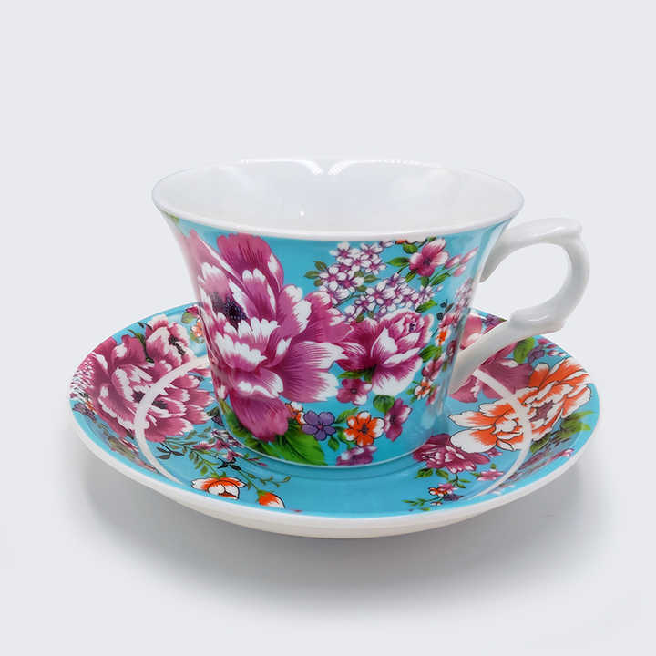 Wholesale Ceramic Blue Onglaze Decal Top-Notch Screen Print Transfers Washable Coffee Cups and Teacup Mugs Business Gift Set
