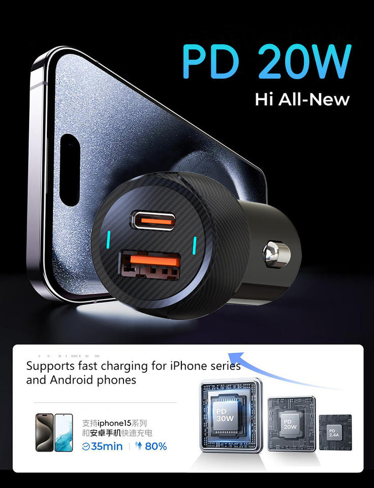 Wholesale Charging Usb Car Pd Fast Charger Car Accessory Type C 38W QC 3.0 Dual Port for Bus Taxi Modified Car Charger