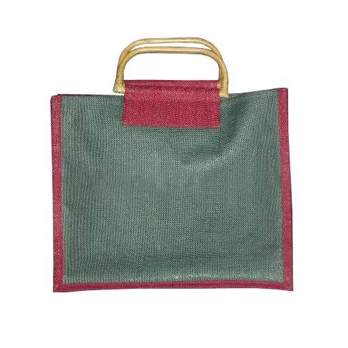 Wholesale Cheap Dyed Jute Shopping Bag Tote Jute Bag PP Laminated Wooden D Shape Cane Handle Dyed Hessian Grocery Bag
