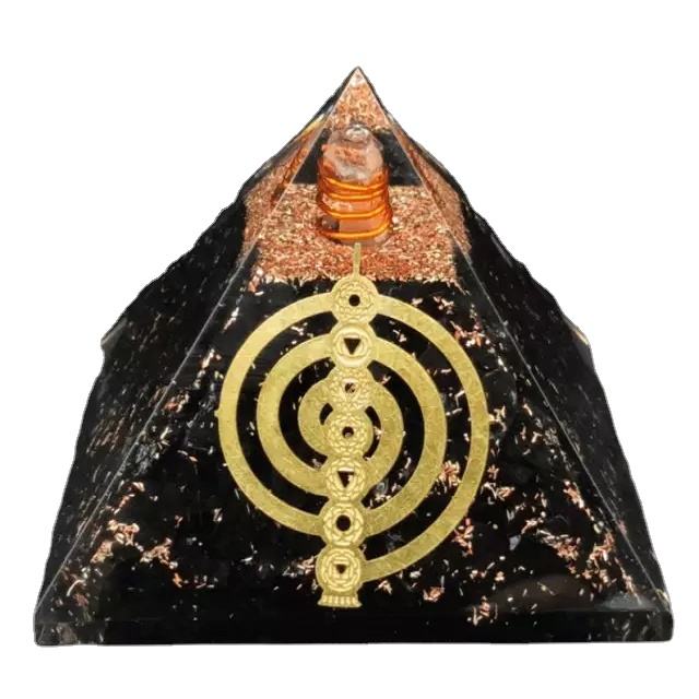 Wholesale Cheap Factory Price Natural Agate Stone Orgone Orgonite Black Tourmaline Chips Carved Energy Pyramid Gemstone
