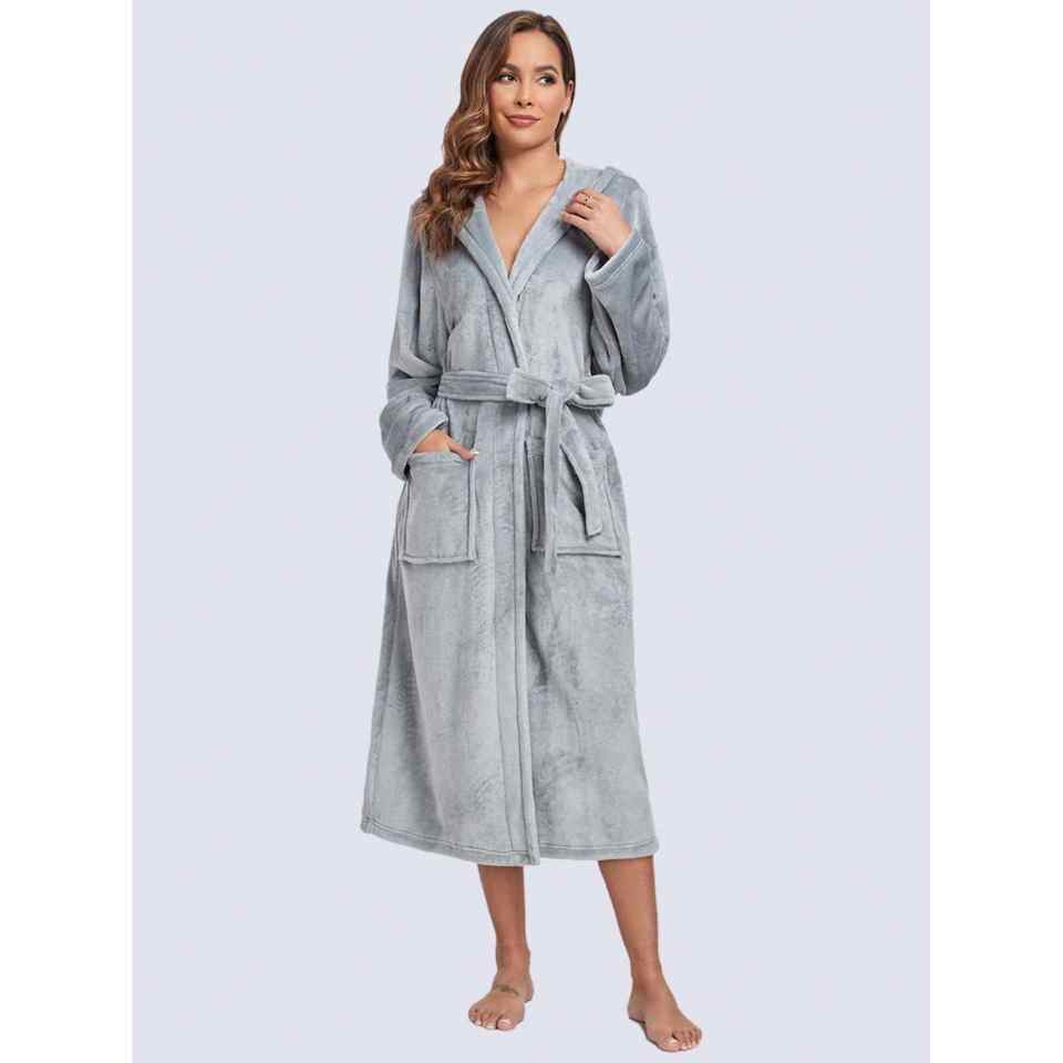 Wholesale Cheap Plush Robe US Local Warehouse Solid Sleepwear for Adults 3XL Thickened Flannel Warm Soft Hooded Pajama for