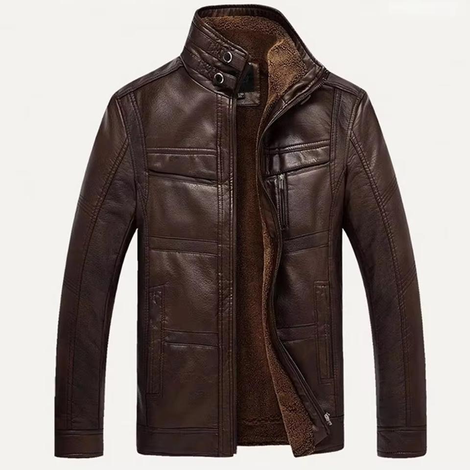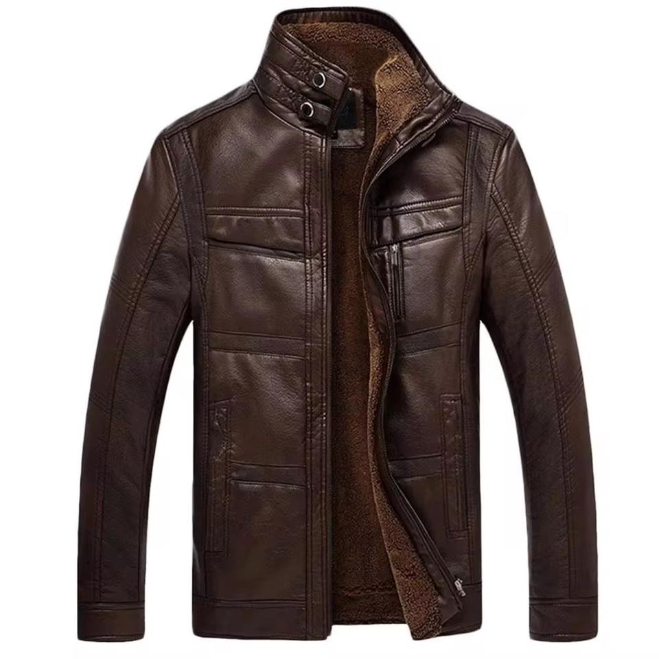 Wholesale Cheap Price Men's Cow Skin Leather Motorcycle Jacket Winter Collection Hooded Stand Collar High Street Front