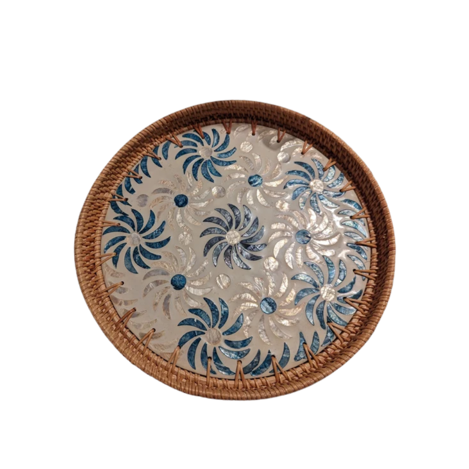 Wholesale Cheap Price Rattan Serving Platter Rattan Ceramic Plate With Multiple Pattern Dinnerware Set Vietnam Handmade Factory