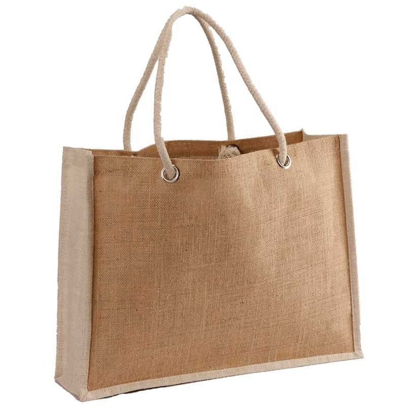 Wholesale Cheap Reusable Custom Logo Printed Grocery Shopping Tote Jute Bag with Leather Handle Large Hemp Burlap