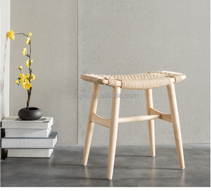 Wholesale Cheap Stackable Counter Height Foot Rattan Nordic Modern Wooden Kitchen Step Ottoman Stool