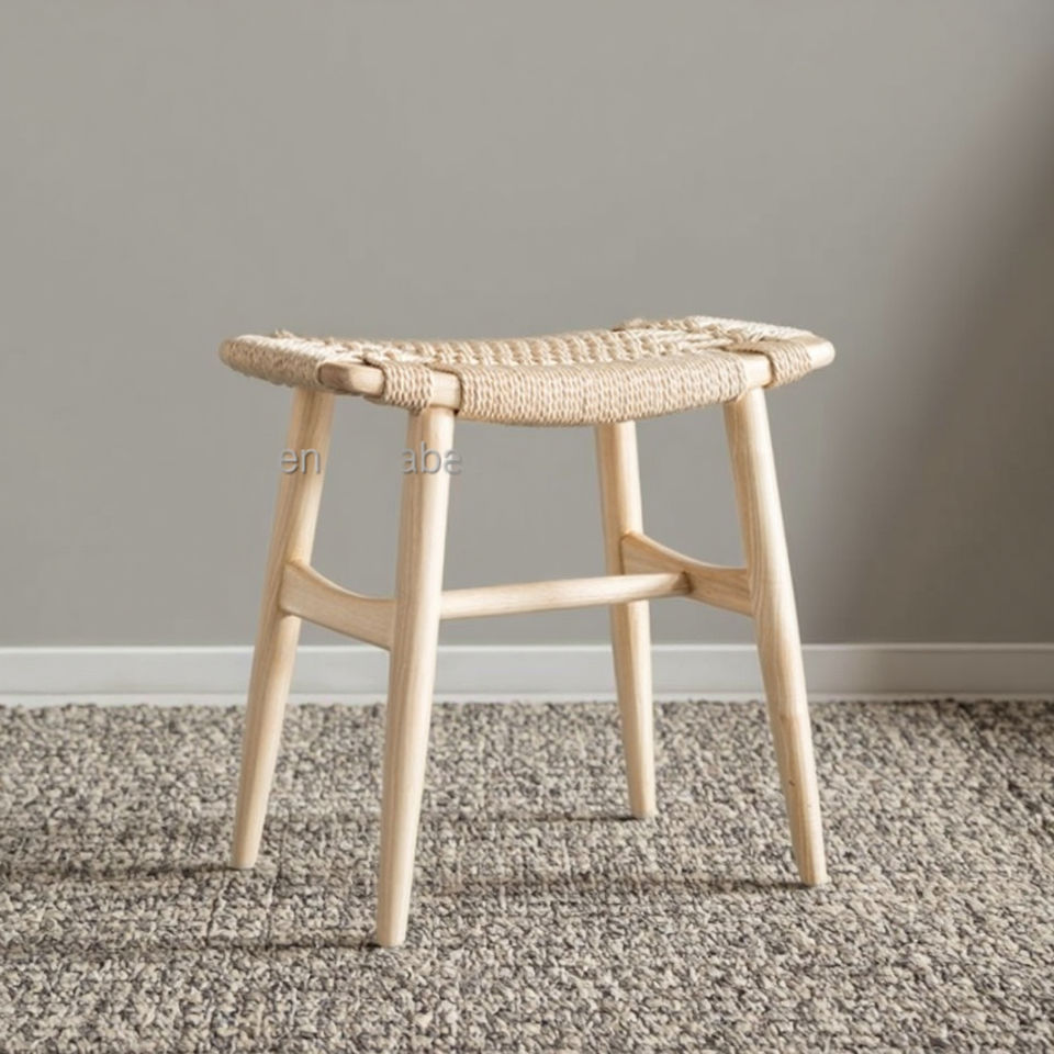 Wholesale Cheap Stackable Counter Height Foot Rattan Nordic Modern Wooden Kitchen Step Ottoman Stool