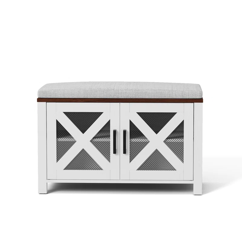 Wholesale Chic Wooden Shoe Racks for Home Durable Farmhouse Storage Bench with Cushion Adjustable Shelves Living Room Furniture