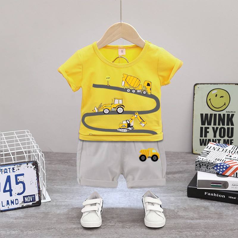 Boy's Shorts Set Orange New York Printed Summer T-shirt Bottom Top Set Quality