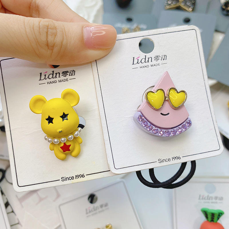 Wholesale Children'S Bear Headband Elastic Cartoon Spray Paint Dripping Rubber Hair Band Hair Rope Headwear