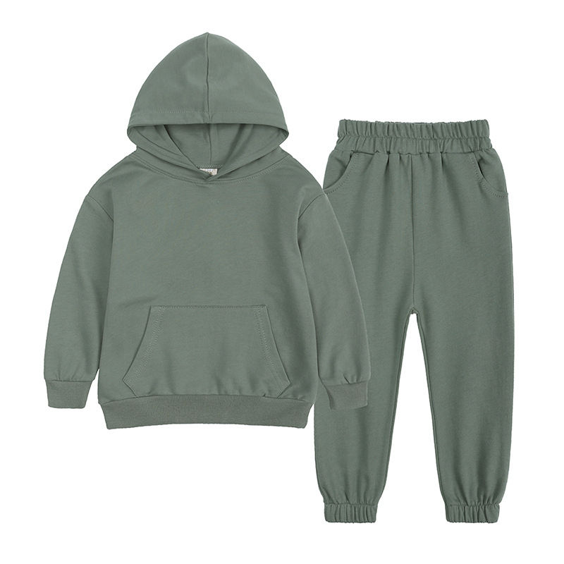 Wholesale Children's Casual Clothing Solid Cotton Boys' Sweat Suits Set Hoodie Kids' Sweatpants and Hooded Top Pants Set