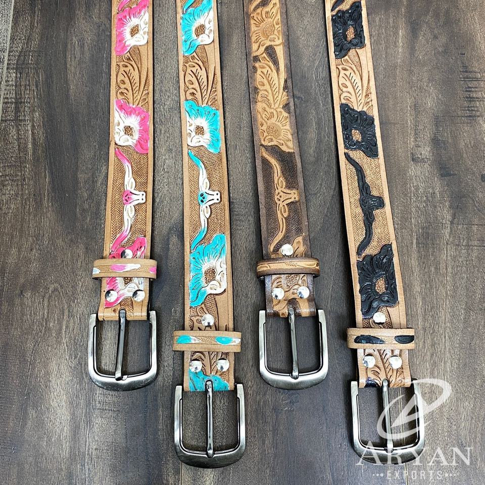 Product name:Hand Tooled Leather Pin Buckle Kids Belt