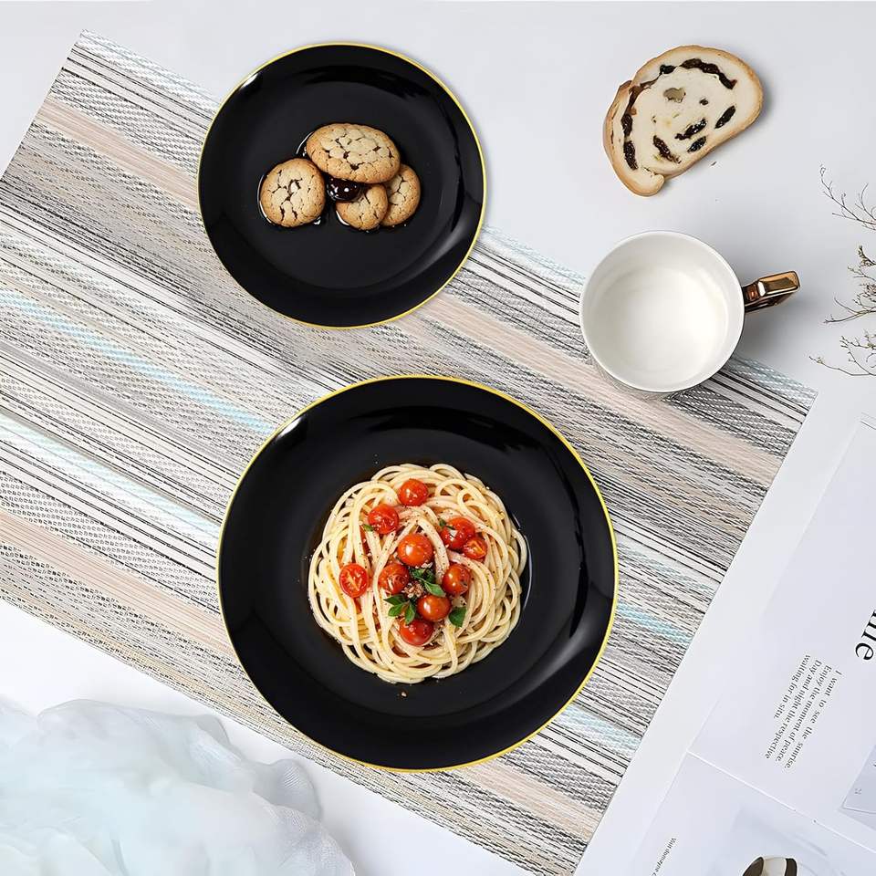 Wholesale China Service for 6 Wholesale Full Ceramic Nordic Plates Luxury Dinner Black 24 Pcs Stoneware Dinnerware Set Home