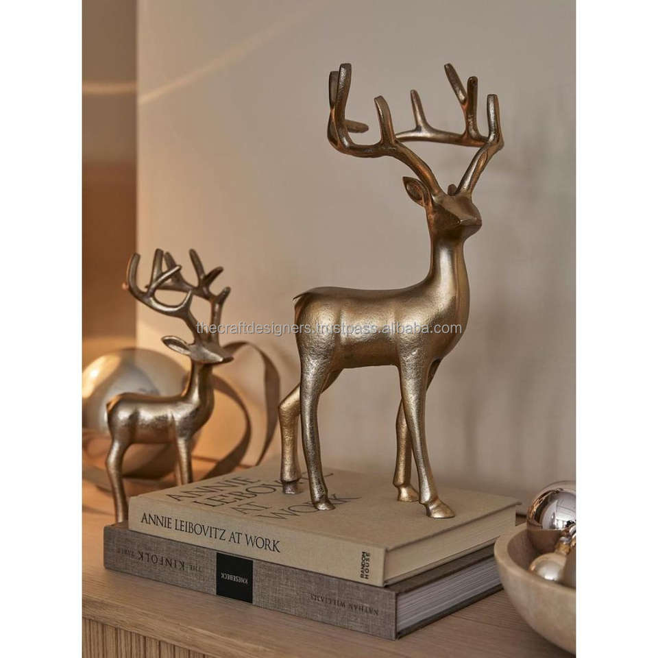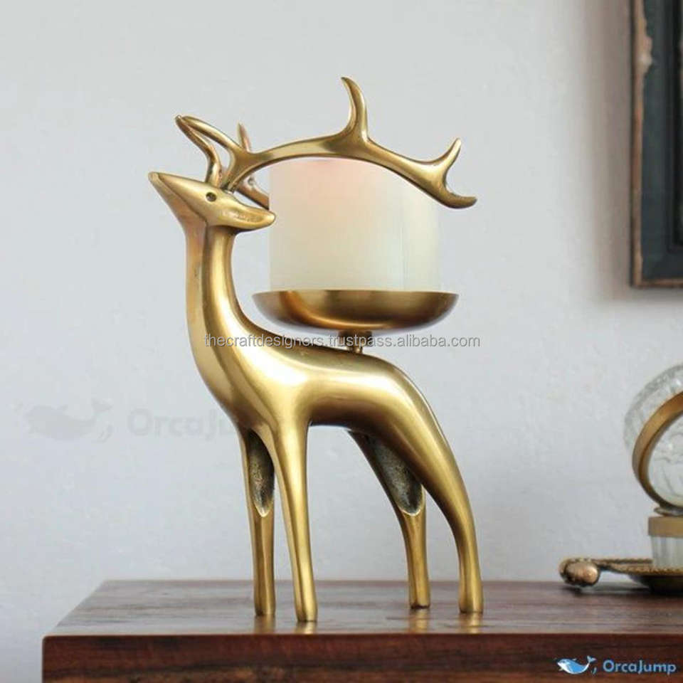 Wholesale Christmas Decorative Object Best Selling Solid Cast Aluminium Reindeer Candle Holder Single Piece Gold Antique Object