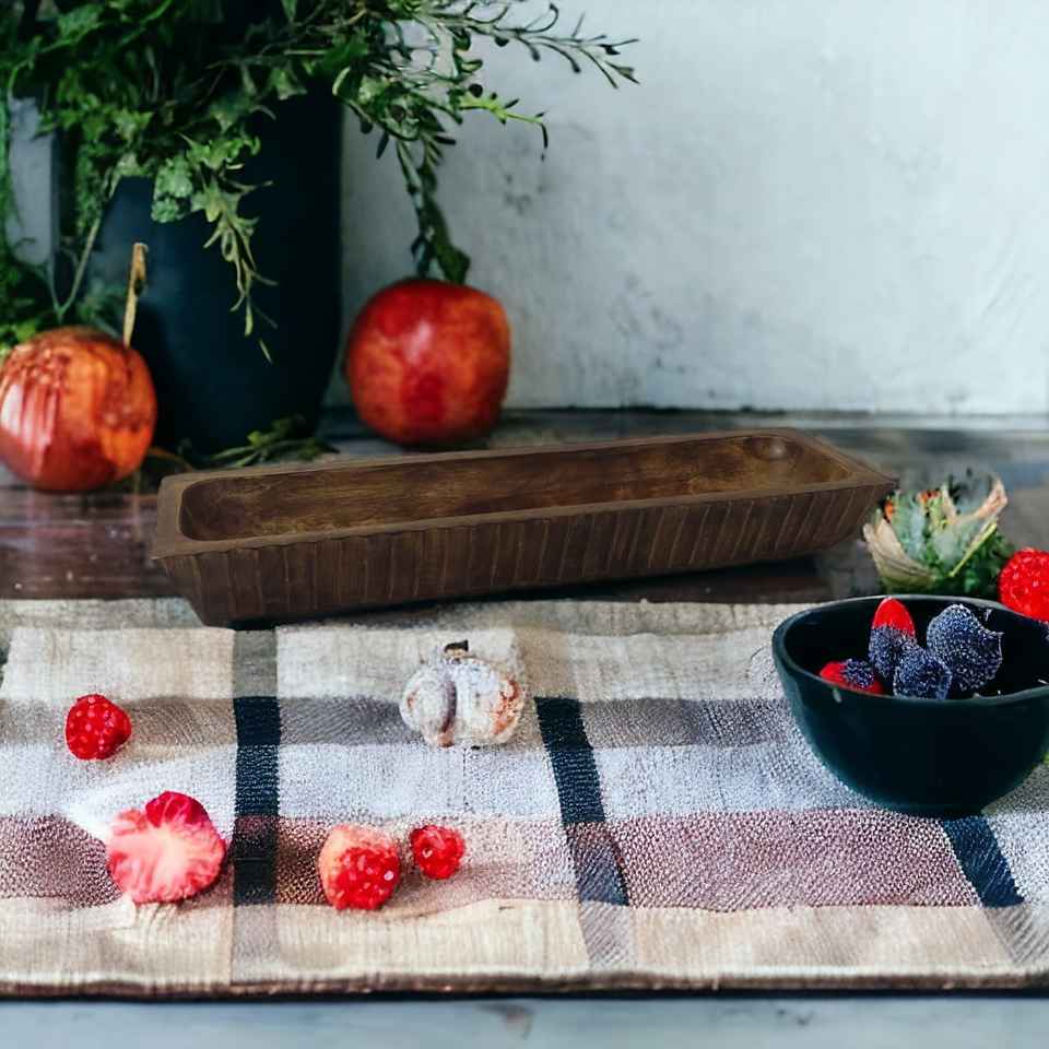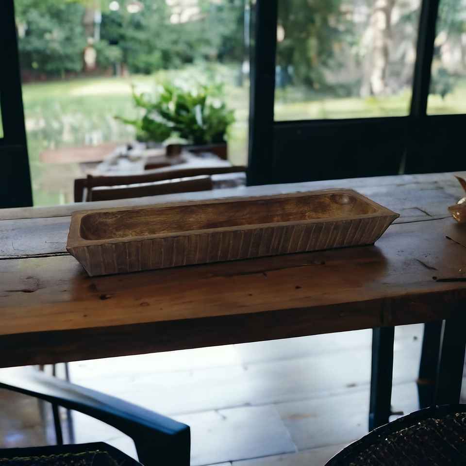 Wholesale Christmas Luxury Rustic Natural Long Mango Wood Eco-Friendly Rectangular Hand-carved Home Decor Candle Dough Bowl