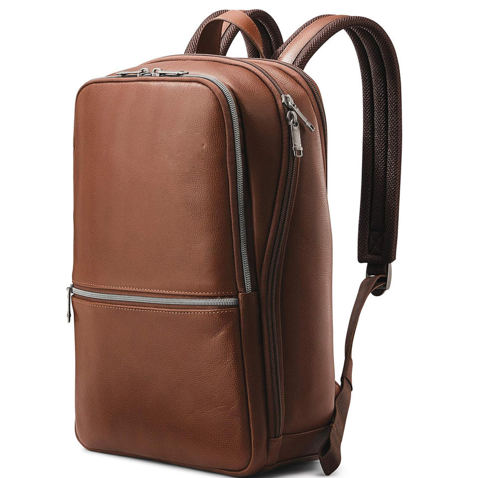 Wholesale Classic Leather Slim Backpack Cognac Laptop Shoulder Bag