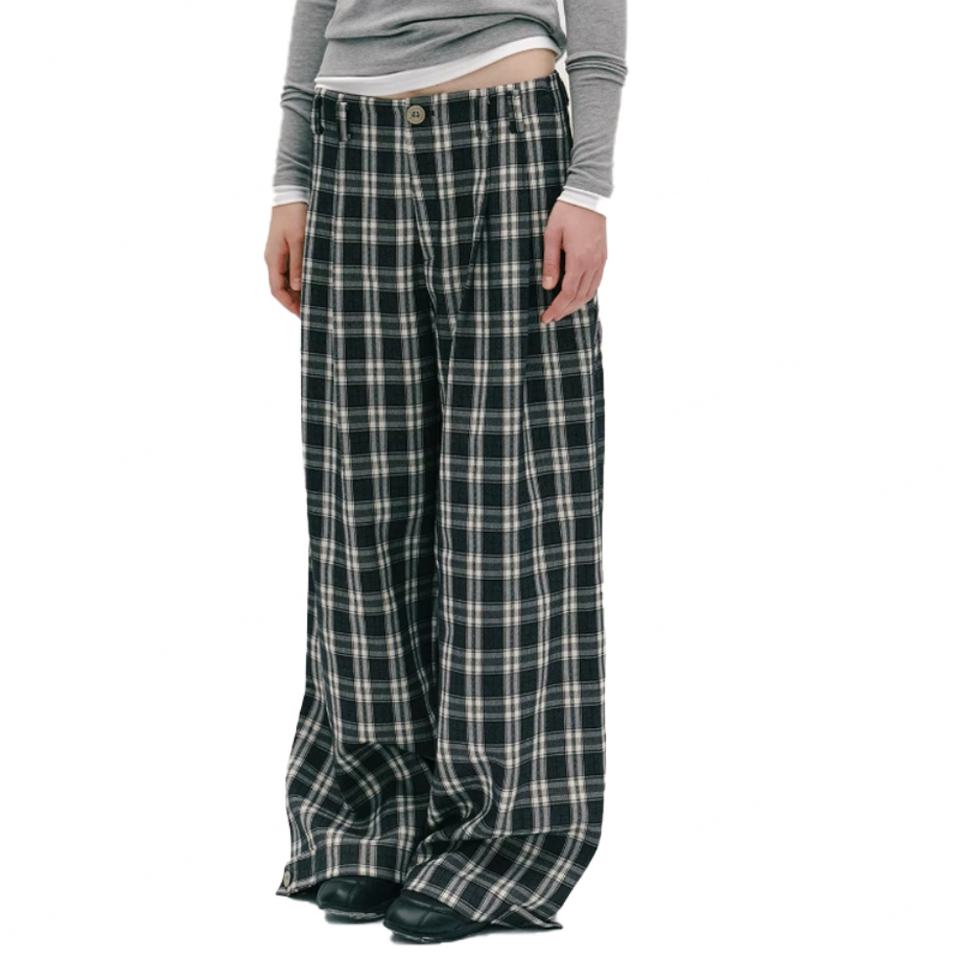 Wholesale Classic Plaid Loose Wide-leg Men's Trousers High-Quality Plaid Men's Suit Pants Classic Pleated Men's Dress Pants
