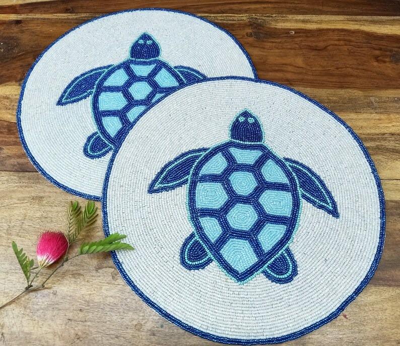 Wholesale Classic Style Luxury Handmade Embroidery Eco-Friendly Wedding Table Placemat Coasters Set Sky Blue White Glass Beads