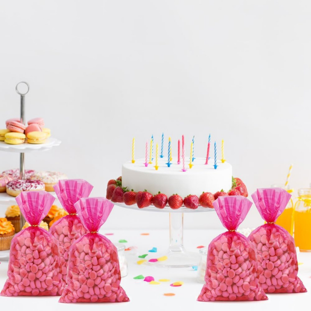 Wholesale Clear Plastic Cellophane Gift Bags with Gold Twist Ties for Candy & Cookie Packaging