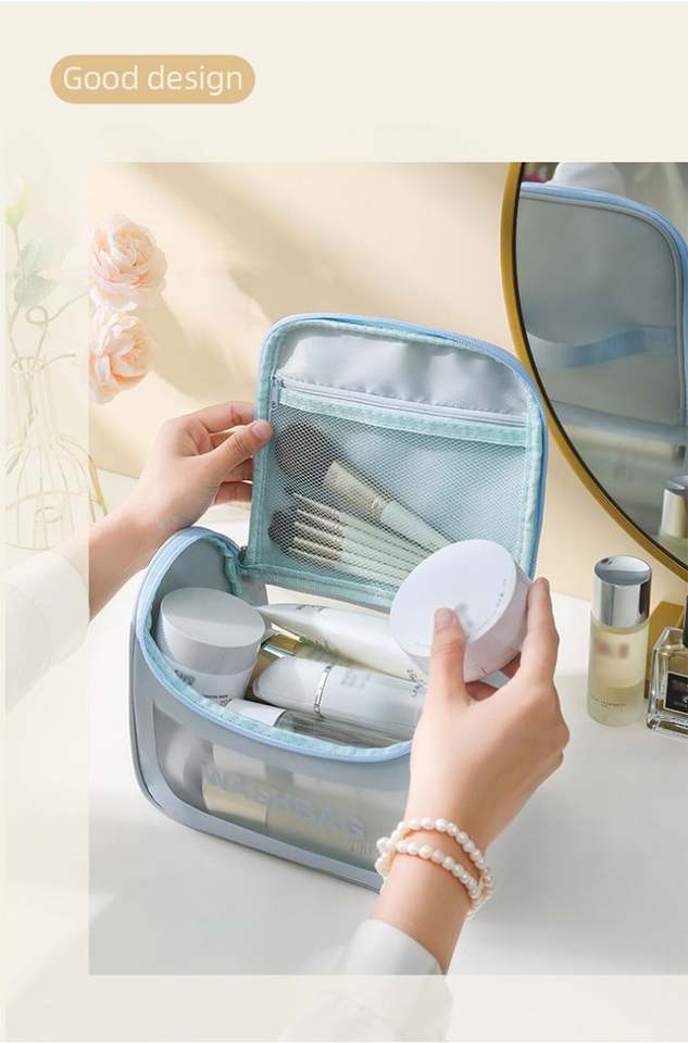 Transparent Luxury Cosmetic Pouch Fashion Business PVC Leather Bag with Handle Makeup Storage and Organization