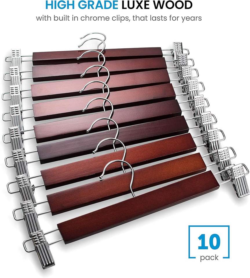 Feature 1:skirt hanger, lotus wood, with metal clips