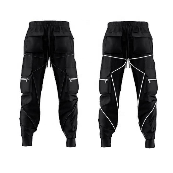 Wholesale Clothing Fashion Casual Hip Hop Men's Trousers 100% Polyester Fabric Outdoor Reflective Windbreaker Men Cargo Pants