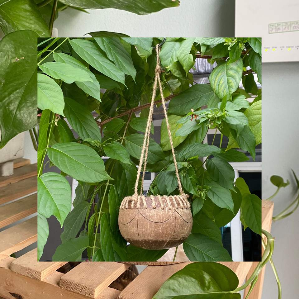 Wholesale Coconut Shell Hanging Flower Pot with Rope Home and Garden Planter Pot