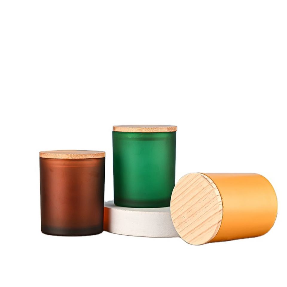Wholesale Colorful 6oz 10oz 14oz DIY Soy Wax Container Glass Candle Holders Lanterns and Jars With Bamboo Wood Metal Lids