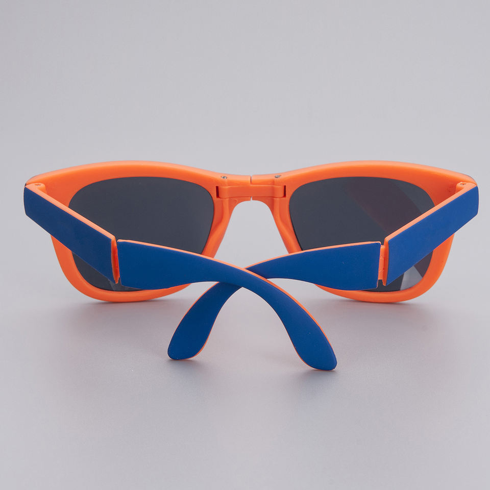 Wholesale Compact Designer Two-Tone Navy Orange Sunglasses Portable Pocket-Foldable PC Custom Logo Protective Yellow Purple