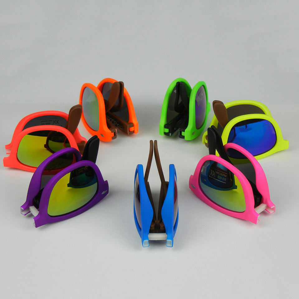 Wholesale Compact Pocket UV400 Sunglasses Custom Logo Two Tone Black Red Rubber Mirror Lens Party Wedding Green Yellow Blue