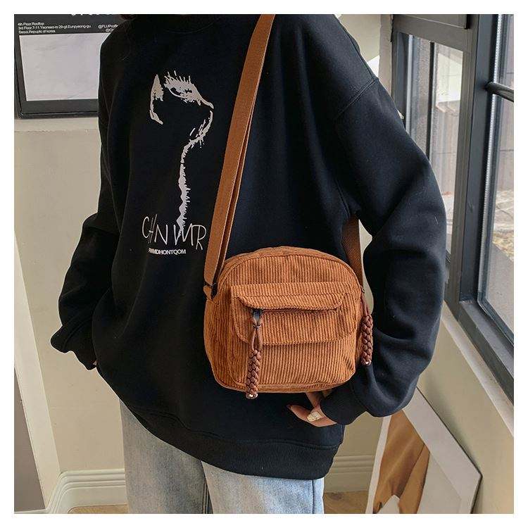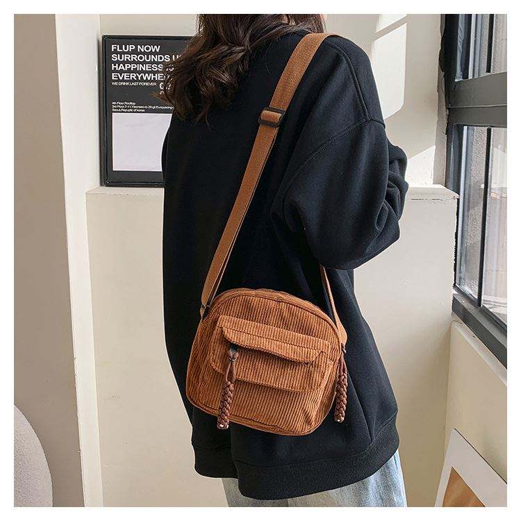 Wholesale Fashion Corduroy Women's Single Strap Zipper Closure Tassel Anti-Theft Small Shoulder/Crossbody Tote Messenger Bag