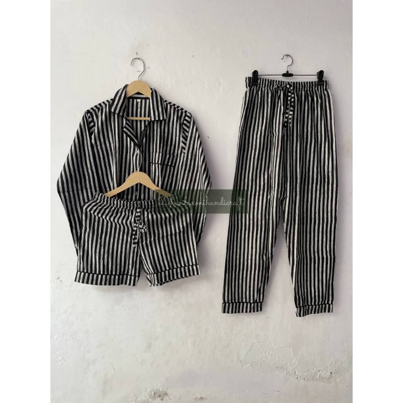 Wholesale Cotton Black & White Stripe Pyjama Set 3 Piece Long & Short Pyjama Set Bridesmaid Pyjamas Unisex Pjs Women;s Sleepwear