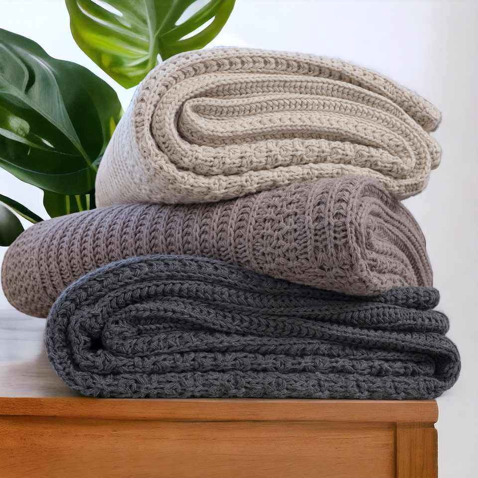 Wholesale Cotton Blanket Beige Blanket Knitted 100% Acrylic REBECCA Blanket 200*220 cm High Quality Home Tekstile