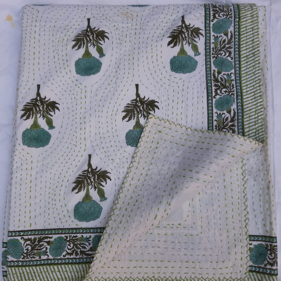 Product Name:Beautiful Hand Block Printed Cotton Fabric Bed Cover