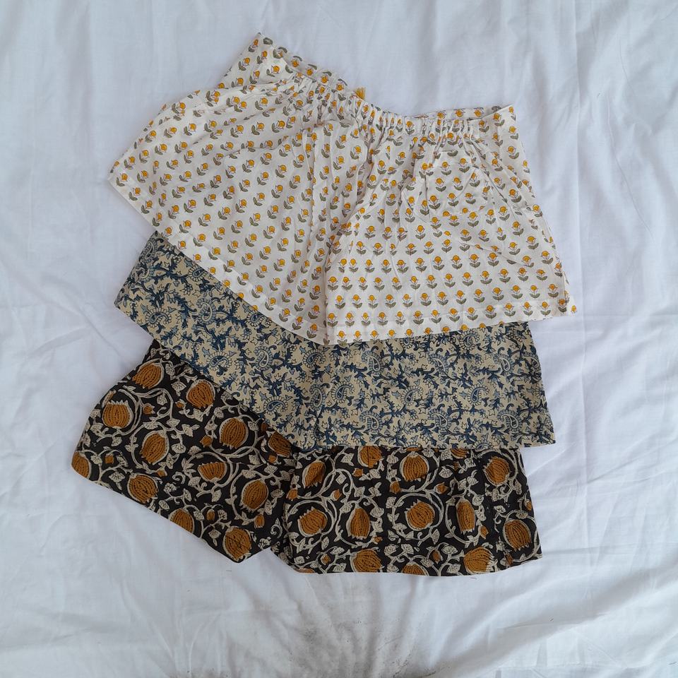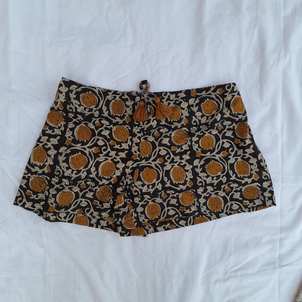 Product name:Cotton Block Printed Fabric Short With Drawstring Elastic Waistline