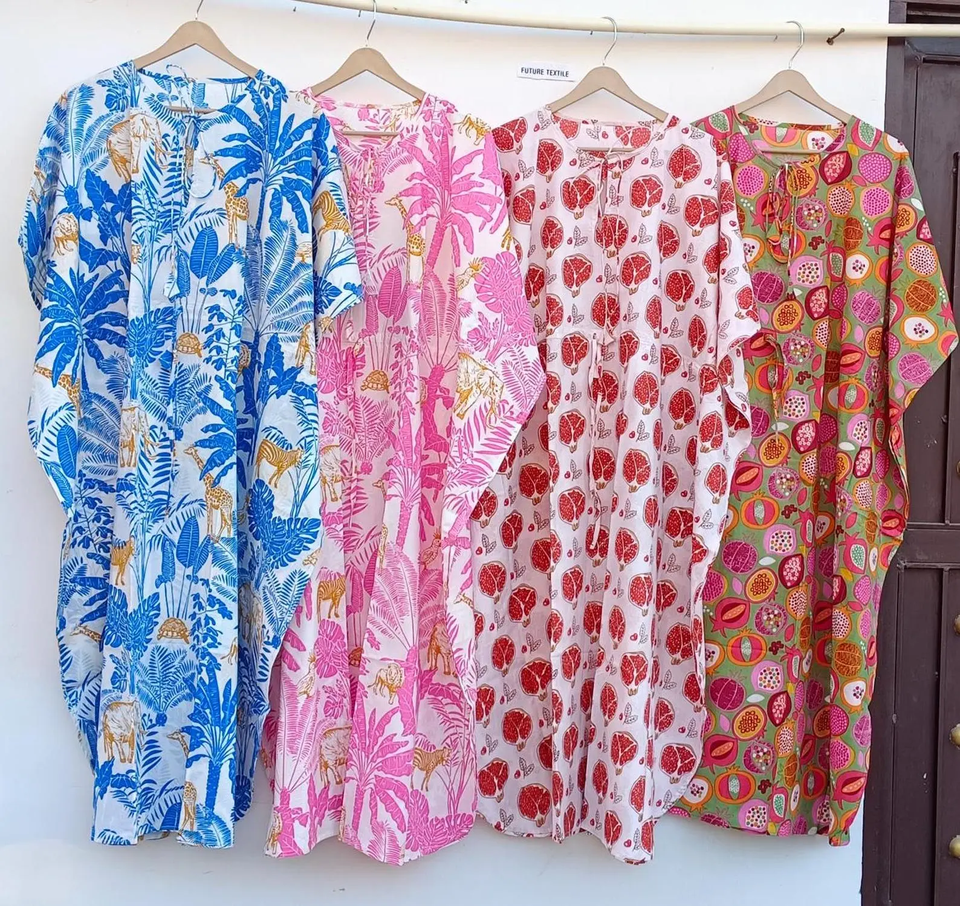 Wholesale Cotton Kaftan Indian Floral Kaftan Long Caftan Dress For to be Moms Beach Cover up Sleepwear Summer wear kaftan