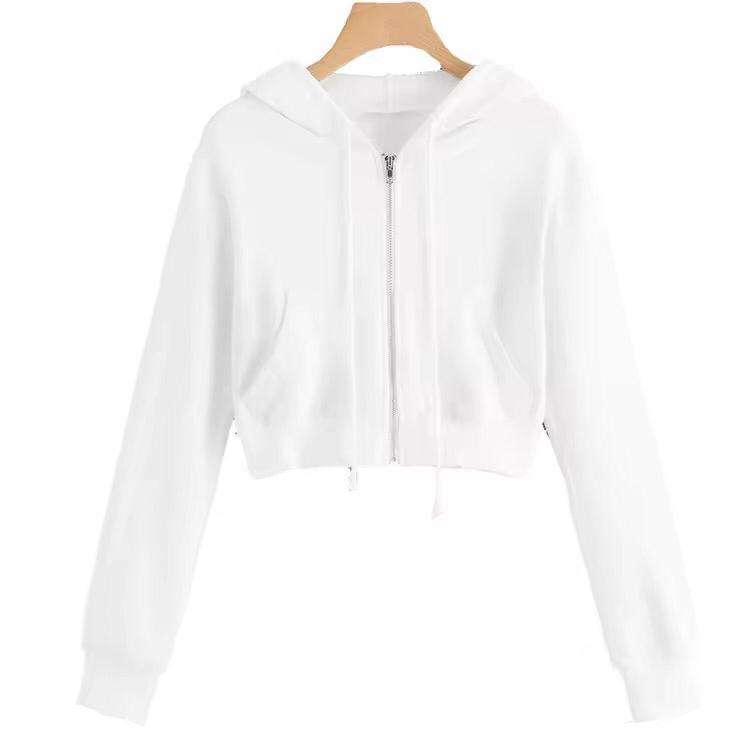 Wholesale Cotton Ladies Blank GYM Long Sleeve Tracksuit Crop Tops Croptop Sweatshirt Custom LOGO Cropped Hoodie for Women