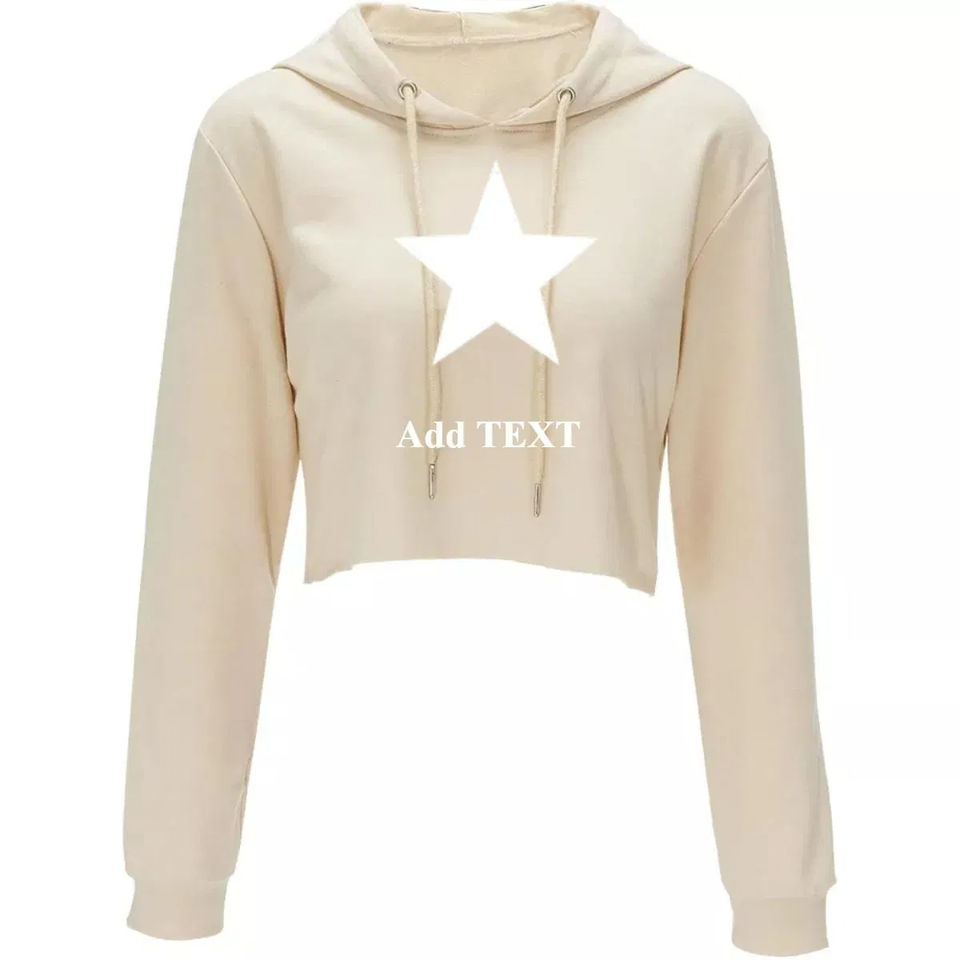 Wholesale Cotton Ladies Blank Long Sleeve Tracksuit Crop Tops Sweatshirt Custom Logo Cropped Hoodie for Women